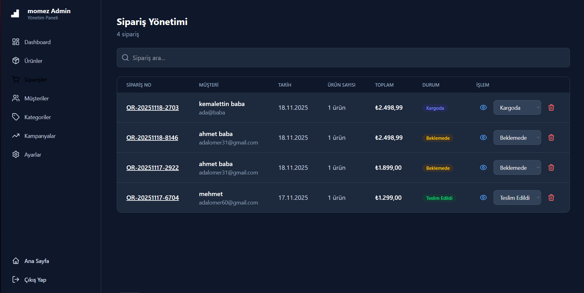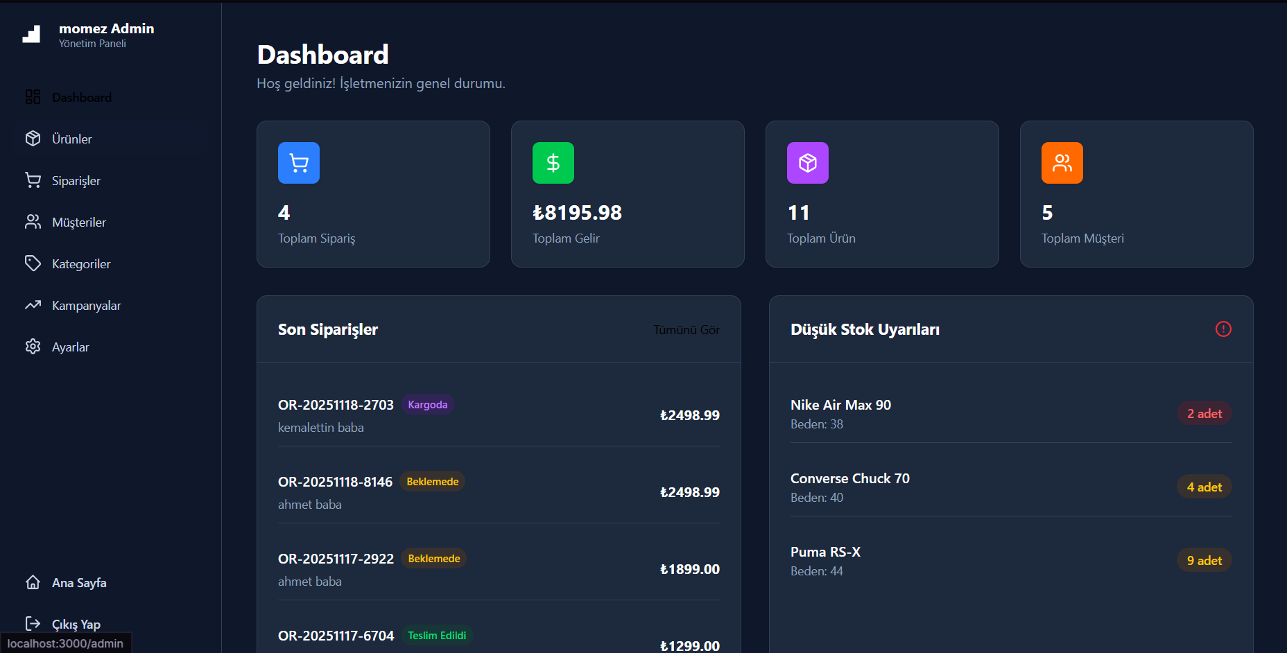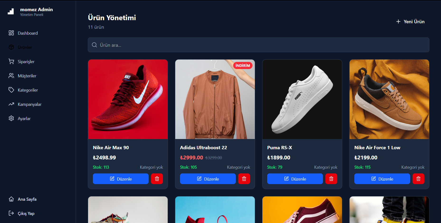 Admin paneli mevcut olan ürün takip,satış,düzenleme,kargo takibinin bulunduğu tam donanımlı bir e-ticaret sitesi