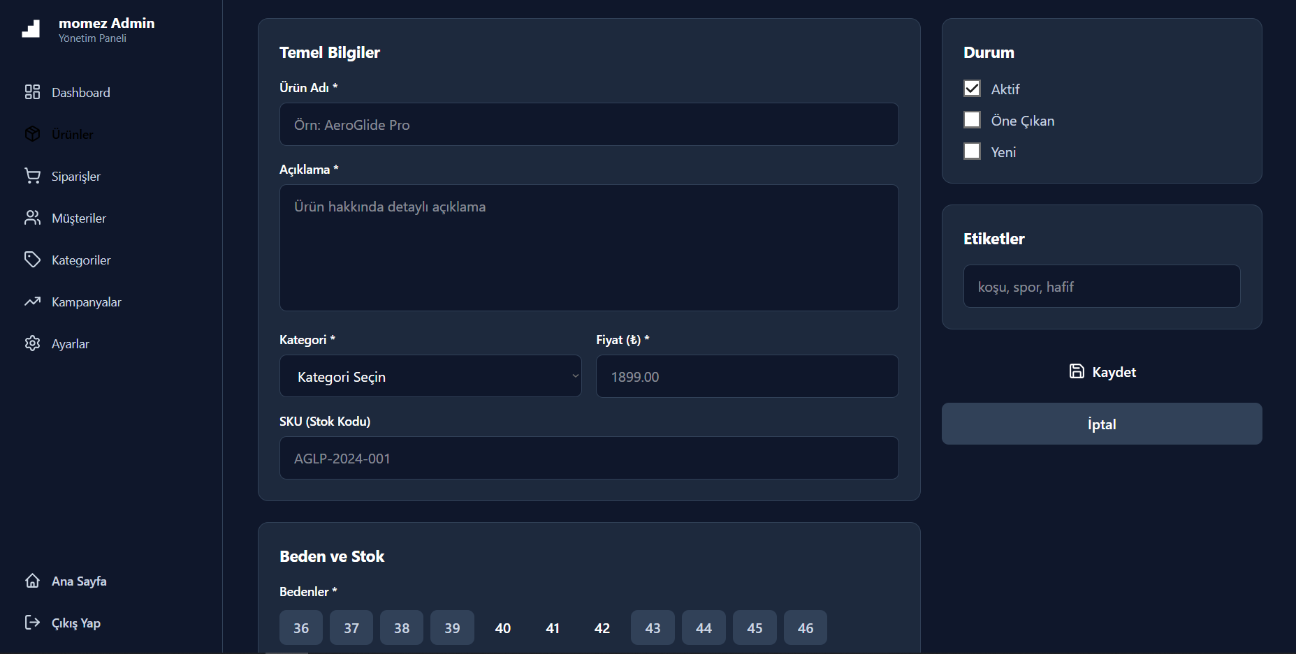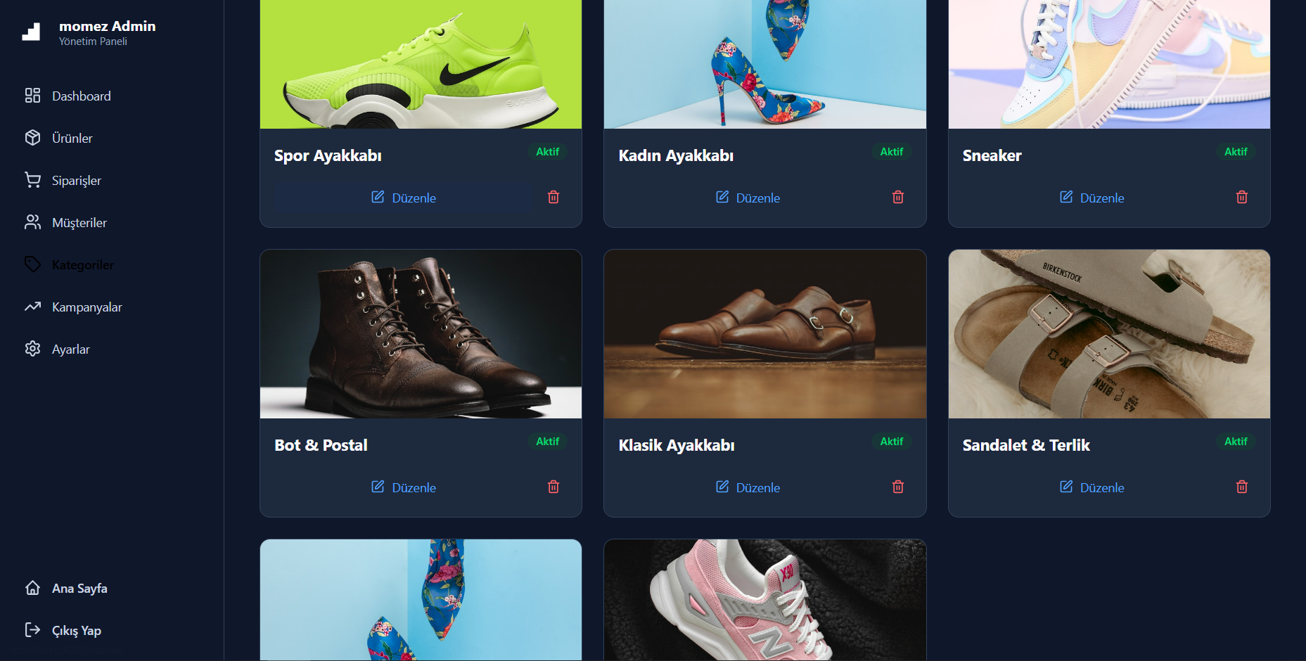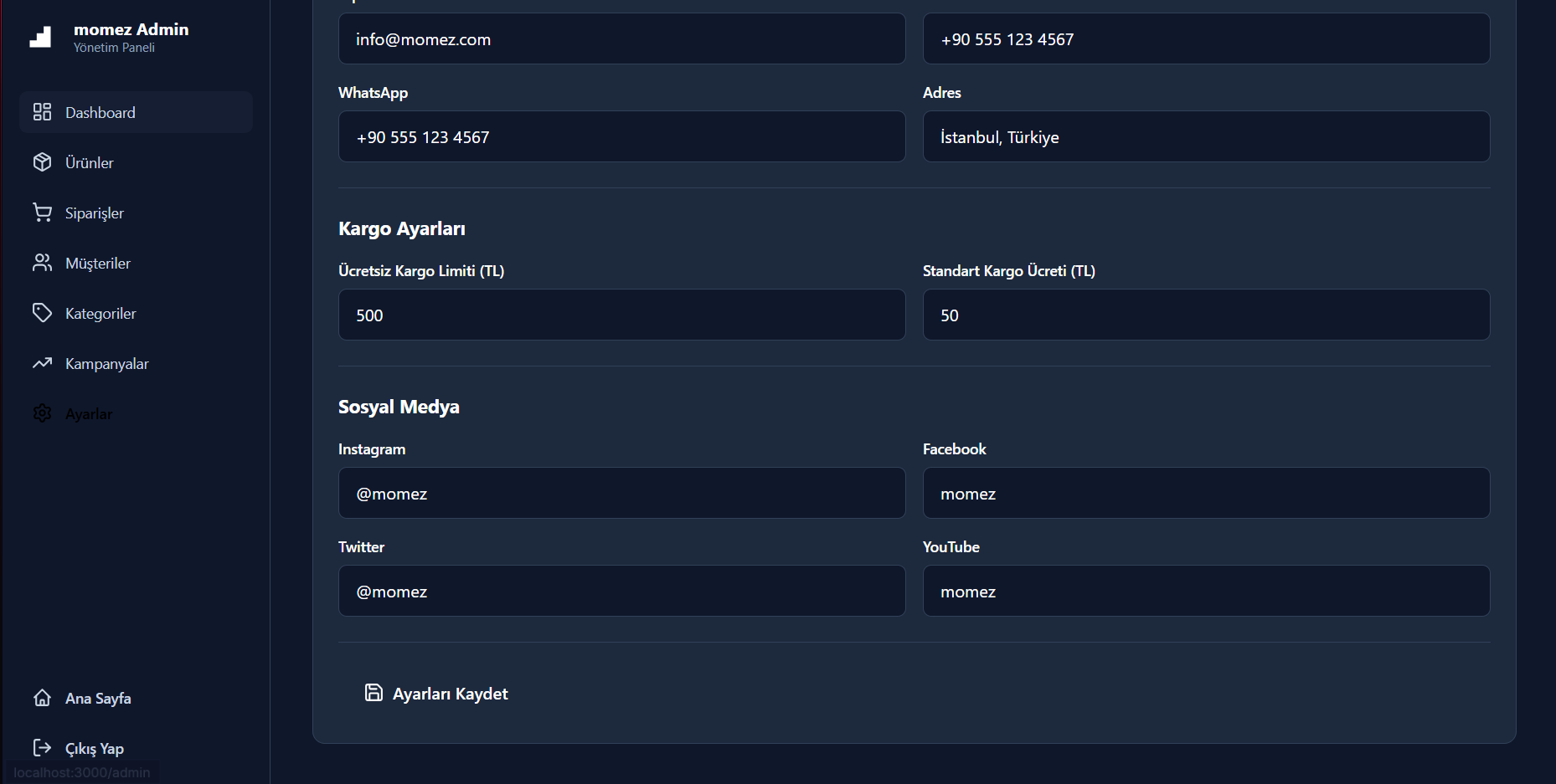 Admin paneli mevcut olan ürün takip,satış,düzenleme,kargo takibinin bulunduğu tam donanımlı bir e-ticaret sitesi